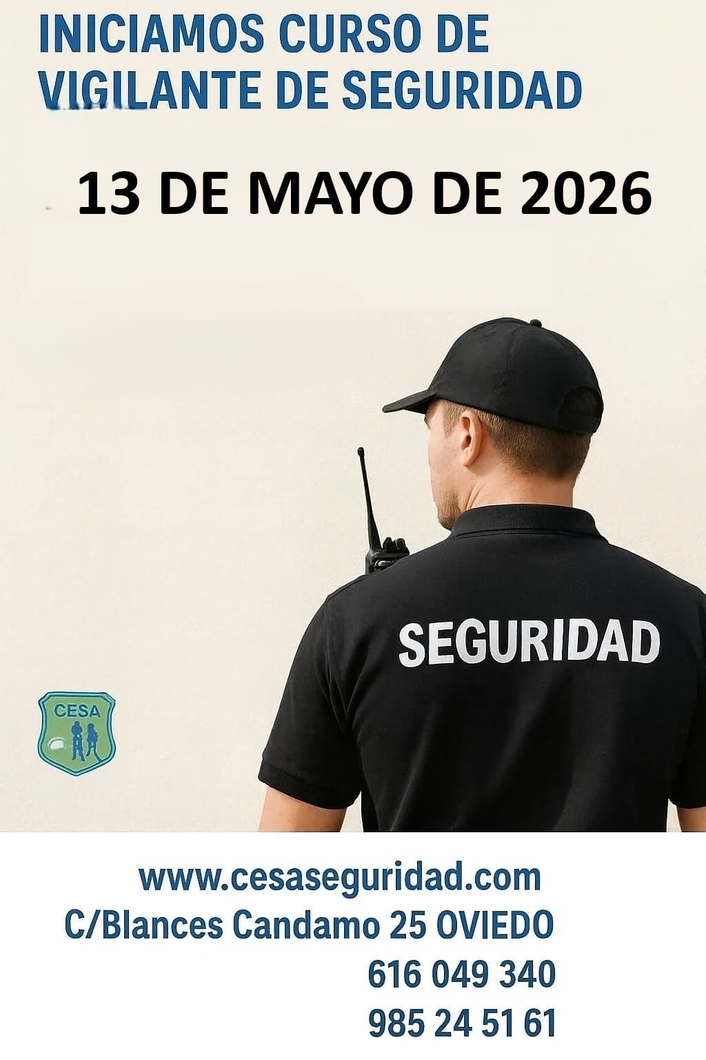 Antes de nada queremos darte las gracias por visitar nuestra Web. CESA (Centro de Estudios de Seguridad de Asturias) comenzó su andadura en el año 1996 con el objetivo de formar, actualizar y adiestrar a personal de seguridad privada. Desde entonces han sido multitud los vigilantes de seguridad, vigilantes de explosivos, escoltas privados, guardas rurales y guardas de caza que han sido instruidos por nosotros.